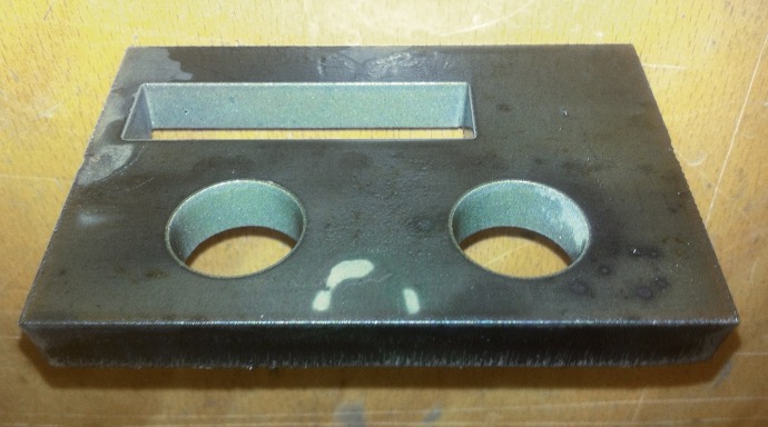 Échantillon d’acier découpé à l’intérieur avec le système Waterjet et le profil externe avec Plasma.
